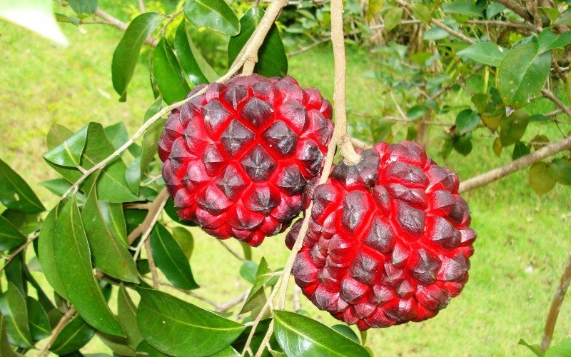 Entre outubro e novembro, surgem flores grandes e vistosas, com tons entre o rosa e o arroxeado, que atraem polinizadores e ajudam a manter a biodiversidade local. Os frutos aparecem de março a maio: são bagas de coloração vermelha intensa, com polpa aquosa formada por gomos aderidos ao centro. Além de chamarem a atenção de animais silvestres — que dispersam as sementes — os frutos são comestíveis.